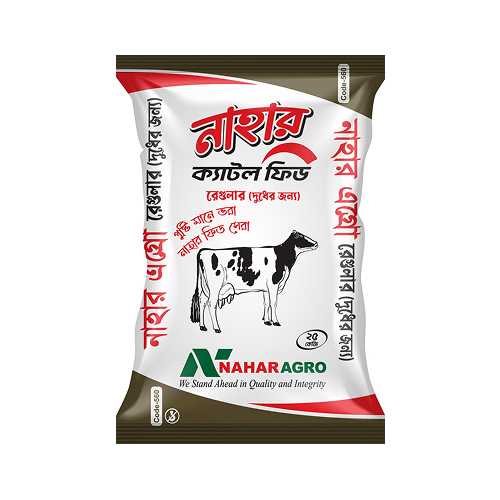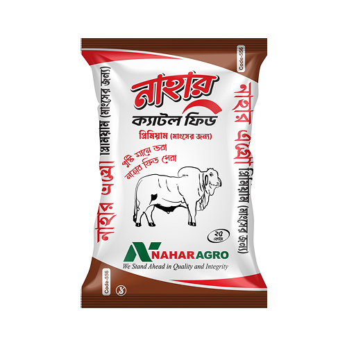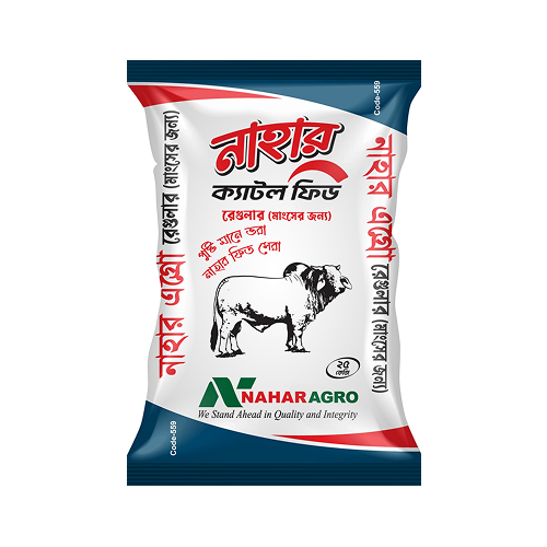 This image showcases a 25 KG package of "Floating Carp Grower" fish feed, manufactured by Nahar Agro. The product is presented in a vertical, center-sealed pillow pouch bag, utilizing a distinct color palette of blue, white, and red.The design features deep blue sections at the top and bottom, which are separated from the large white central panel by a dynamic, multi-layered wave pattern in red, white, and blue. Centrally displayed is a detailed illustration of a Carp, clearly indicating the fish species this "Grower" feed is formulated for.The product name, "Floating Carp Grower," is printed directly below the main "Nahar" brand logo. Key specifications are listed underneath, noting that the feed is "Oil Coated" and has a "3 mm" pellet size. This 3 mm size, combined with the "Grower" designation, signifies it is intended for Carp in their intermediate growth phase.The official Nahar Agro company logo is placed at the bottom-center, complete with its stylized "N" emblem and the English slogan, "We Stand Ahead in Quality and Integrity." For product identification, the "Code-601" is visibly printed in both the top-right and bottom-left corners of the bag.